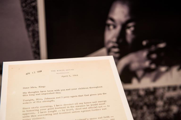 Keywords: lbj president lyndon johnson library austin texas usa The condolence letter from President Lyndon Johnson to Coretta Scott King, the widow of slain civil rights leader the Rev. Martin Luther King Jr. LBJ Presidential Library photo by Jay Godwin The condolence letter from President Lyndon Johnson to Coretta Scott King, the widow of slain civil rights leader the Rev. Martin Luther King Jr. LBJ Presidential Library photo by Jay Godwin |