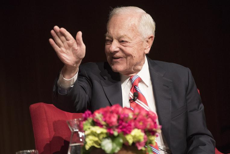 | Keywords: lbj library lbjlibrary austin texas tx usa people Former Face the Nation television anchor and veteran journalist Bob Schieffer discussed his storied career with Joseph Califano, Jr., domestic policy advisor to President Johnson, on Thursday evening, Jan. 21, 2016, at the LBJ Presidential Library auditorium. Schieffer retired in May 2015, in his 58th year as a reporter and his 46th year at CBS News. He is one of the few broadcast or print journalists to have covered all four major beats in the nation's capital – the White House, the Pentagon, the State Department and Capitol Hill. He won eight Emmys and numerous other journalism awards. Califano is founder and chairman of the board of The National Center on Addiction and Substance Abuse (CASA) at Columbia University and serves as a trustee of the LBJ Foundation. LBJ Library photo by Jay Godwin - January 21, 2016 Former Face the Nation television anchor and veteran journalist Bob Schieffer discussed his storied career with Joseph Califano, Jr., domestic policy advisor to President Johnson, on Thursday evening, Jan. 21, 2016, at the LBJ Presidential Library auditorium. Schieffer retired in May 2015, in his 58th year as a reporter and his 46th year at CBS News. He is one of the few broadcast or print journalists to have covered all four major beats in the nation's capital – the White House, the Pentagon, the State Department and Capitol Hill. He won eight Emmys and numerous other journalism awards. Califano is founder and chairman of the board of The National Center on Addiction and Substance Abuse (CASA) at Columbia University and serves as a trustee of the LBJ Foundation. LBJ Library photo by Jay Godwin - January 21, 2016 |