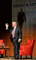 Keywords: lbj library lbjlibrary austin texas lyndon johnson lyndonjohnson president tx usa Dr. Gates waves to the audience at the close of the event. Former U.S. Secretary of Defense Dr. Robert Gates appeared in the LBJ Auditorium on Thursday, January 28th, 2016, as the third annual Tom Johnson lecturer in a discussion with LBJ Presidential Library Director Mark Updegrove. Prior to the event, Dr. Gates signed his new book, A Passion for Leadership: Lessons on Change and Reform from Fifty Years of Public Service. Dr. Gates served as defense secretary for both President George W. Bush and President Barack Obama. He also was an officer in the U.S. Air Force and worked for the CIA before being appointed director of that agency. He was a member of the National Security Council staff in four administrations, and served eight presidents, both Democrats and Republicans. He was president of Texas A&M University from 2002 to 2006; is currently chancellor of the College of William & Mary in Williamsburg, Virginia, where he earned a bachelor’s degree; was named president of the Boy Scouts of America in 2013; and has served on several corporate boards of directors. LBJ Library photo by Jay Godwin - January 28, 2016 Dr. Gates waves to the audience at the close of the event. Former U.S. Secretary of Defense Dr. Robert Gates appeared in the LBJ Auditorium on Thursday, January 28th, 2016, as the third annual Tom Johnson lecturer in a discussion with LBJ Presidential Library Director Mark Updegrove. Prior to the event, Dr. Gates signed his new book, A Passion for Leadership: Lessons on Change and Reform from Fifty Years of Public Service. Dr. Gates served as defense secretary for both President George W. Bush and President Barack Obama. He also was an officer in the U.S. Air Force and worked for the CIA before being appointed director of that agency. He was a member of the National Security Council staff in four administrations, and served eight presidents, both Democrats and Republicans. He was president of Texas A&M University from 2002 to 2006; is currently chancellor of the College of William & Mary in Williamsburg, Virginia, where he earned a bachelor’s degree; was named president of the Boy Scouts of America in 2013; and has served on several corporate boards of directors. LBJ Library photo by Jay Godwin - January 28, 2016 |