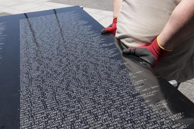 Keywords: dsc_6743.nef dsc6743nef austin tx usa A half-scale replica of the Vietnam Veterans Memorial in Washington, D.C., is assembled outside of the LBJ Presidential Library on Thursday, April 21, 2016. “The Wall That Heals” is offered by the Vietnam Veterans Memorial Fund so local communities and Vietnam veterans can experience the memorial to the fallen, which lists 58,307 names. The Wall will be on display 24/7 on the plaza outside the LBJ Presidential Library from Friday, April 22 through Thursday, April 28 as part of a Vietnam War Summit event at the library. LBJ Library photo by Jay Godwin 04/21/2016. A half-scale replica of the Vietnam Veterans Memorial in Washington, D.C., is assembled outside of the LBJ Presidential Library on Thursday, April 21, 2016. “The Wall That Heals” is offered by the Vietnam Veterans Memorial Fund so local communities and Vietnam veterans can experience the memorial to the fallen, which lists 58,307 names. The Wall will be on display 24/7 on the plaza outside the LBJ Presidential Library from Friday, April 22 through Thursday, April 28 as part of a Vietnam War Summit event at the library. LBJ Library photo by Jay Godwin 04/21/2016. |