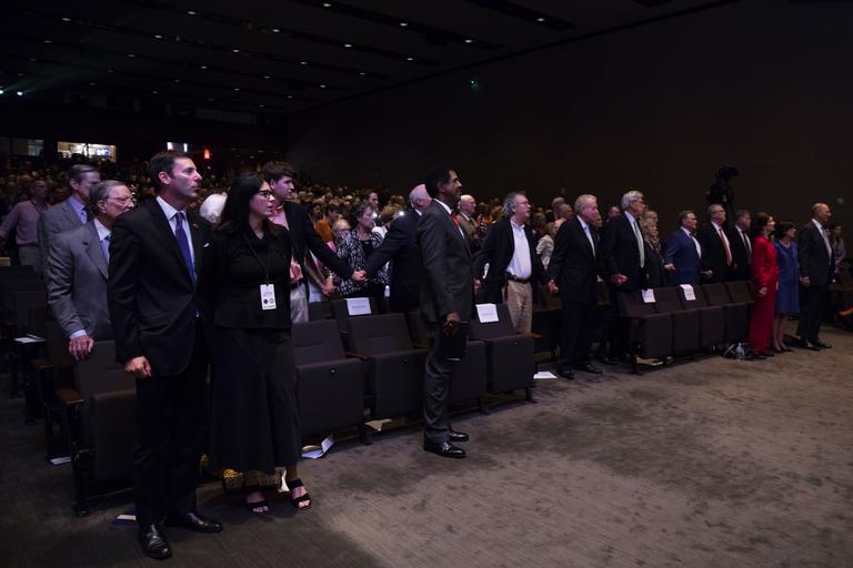 Keywords: winner The audience at the LBJ Presidential Library stands and sings along as folk singer Peter Yarrow, performs "Where Have All The Flowers Gone?" on Thursday, April 28, 2016. The event was part of the library’s three-day Vietnam War Summit. At left is Mark Updegrove, director of the LBJ Library. Yarrow, who used to perform with folk group Peter, Paul and Mary, was part of the huge 1969 moratorium rally in Washington, D.C. against the Vietnam War. He participated in a panel discussion at the LBJ Library with singer/songwriter Country Joe McDonald, a Navy veteran, who wrote one of the most memorable Vietnam War protest songs, "I Feel Like I'm Fixin' to Die Rag," for his band, Country Joe and the Fish. The two discussed how the music of the 1960s and 1970s helped to comfort U.S. troops in Vietnam while fueling the anti-war movement at home. The music discussion was moderated by Bob Santelli, executive director of the GRAMMY Museum. LBJ Library photo by David Hume Kennerly 04/28/2016. The audience at the LBJ Presidential Library stands and sings along as folk singer Peter Yarrow, performs "Where Have All The Flowers Gone?" on Thursday, April 28, 2016. The event was part of the library’s three-day Vietnam War Summit. At left is Mark Updegrove, director of the LBJ Library. Yarrow, who used to perform with folk group Peter, Paul and Mary, was part of the huge 1969 moratorium rally in Washington, D.C. against the Vietnam War. He participated in a panel discussion at the LBJ Library with singer/songwriter Country Joe McDonald, a Navy veteran, who wrote one of the most memorable Vietnam War protest songs, "I Feel Like I'm Fixin' to Die Rag," for his band, Country Joe and the Fish. The two discussed how the music of the 1960s and 1970s helped to comfort U.S. troops in Vietnam while fueling the anti-war movement at home. The music discussion was moderated by Bob Santelli, executive director of the GRAMMY Museum. LBJ Library photo by David Hume Kennerly 04/28/2016.