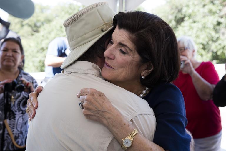| Keywords: winner Luci Baines Johnson, daughter of President Lyndon Johnson and Lady Bird Johnson, hugs Vietnam veteran Ray Leugers of Austin a ceremony to honor Vietnam War veterans outside the LBJ Presidential Library on Wednesday, April 27, 2016. Leugers served in Vietnam in 1968-69 in the First Infantry Division. The ceremony was part of the LBJ Library's three-day Vietnam War Summit, which continues through Thursday, April 28. LBJ Library photo by David Hume Kennerly 04/27/2016. Luci Baines Johnson, daughter of President Lyndon Johnson and Lady Bird Johnson, hugs Vietnam veteran Ray Leugers of Austin a ceremony to honor Vietnam War veterans outside the LBJ Presidential Library on Wednesday, April 27, 2016. Leugers served in Vietnam in 1968-69 in the First Infantry Division. The ceremony was part of the LBJ Library's three-day Vietnam War Summit, which continues through Thursday, April 28. LBJ Library photo by David Hume Kennerly 04/27/2016. |