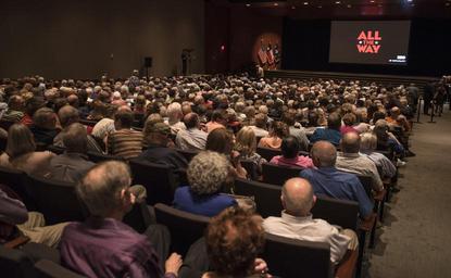 | Keywords: dig13890-111.nef dig13890111nef austin tx usa auditorium people crowd room hall indoor In conjunction with HBO and the LBJ School of Public Affairs, the LBJ Library held a special preview screening and discussion of the new HBO film "All the Way" starring Bryan Cranston in his Tony Award-winning role as Lyndon Johnson and Anthony Mackie as Martin Luther King, Jr. Following the screening of the film, writer Robert Schenkkan, director Jay Roach, actors Bryan Cranston and Anthony Mackie, and historian and consultant on the film Doris Kearns Goodwin, joined Library Director Mark Updegrove on stage for a discussion. The film will debut on HBO on May 21, 2016. LBJ Library photo by Jay Godwin In conjunction with HBO and the LBJ School of Public Affairs, the LBJ Library held a special preview screening and discussion of the new HBO film "All the Way" starring Bryan Cranston in his Tony Award-winning role as Lyndon Johnson and Anthony Mackie as Martin Luther King, Jr. Following the screening of the film, writer Robert Schenkkan, director Jay Roach, actors Bryan Cranston and Anthony Mackie, and historian and consultant on the film Doris Kearns Goodwin, joined Library Director Mark Updegrove on stage for a discussion. The film will debut on HBO on May 21, 2016. LBJ Library photo by Jay Godwin |