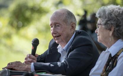 Keywords: dsc_7082.nef dsc7082nef austin tx usa outdoor Former LBJ Pilot Barney Hulett and his wife Libby Hulett, who was curator at the LBJ National Park. The Lyndon B. Johnson National Historical Park celebrated the 108th anniversary of President Johnson’s birth with a ceremony at 10:00 am on Saturday, August 27. Continuing a tradition that Lady Bird Johnson began in 1973, a wreath was placed at the president’s gravesite in the Johnson family cemetery at the LBJ Ranch by Park Superintendent Russ Whitlock and Brigadier General Heather L. Pringle. After the ceremony, park staff members commemorated the National Park Service Centennial by reading the names of the 47 national park units established during Lyndon Johnson’s presidency. LBJ Library photo by Jay Godwin 08/27/2016 Former LBJ Pilot Barney Hulett and his wife Libby Hulett, who was curator at the LBJ National Park. The Lyndon B. Johnson National Historical Park celebrated the 108th anniversary of President Johnson’s birth with a ceremony at 10:00 am on Saturday, August 27. Continuing a tradition that Lady Bird Johnson began in 1973, a wreath was placed at the president’s gravesite in the Johnson family cemetery at the LBJ Ranch by Park Superintendent Russ Whitlock and Brigadier General Heather L. Pringle. After the ceremony, park staff members commemorated the National Park Service Centennial by reading the names of the 47 national park units established during Lyndon Johnson’s presidency. LBJ Library photo by Jay Godwin 08/27/2016
