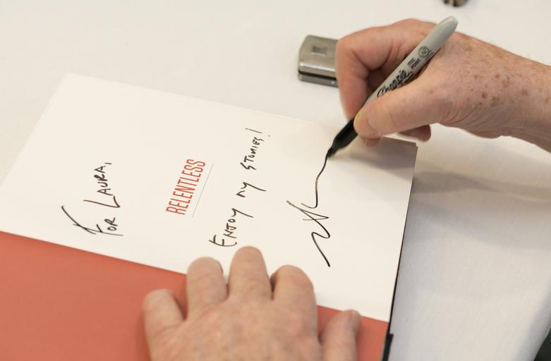 | Keywords: dig13943_084.nef dig13943084nef austin tx usa Neil Leifer signing books before the event. On Thursday evening, October 6th, 2016, the LBJ Presidential Library held a special evening with renowned photographer Neil Leifer, who shared a selection of his powerful photos and stories in a conversation with LBJ Library Director Mark Updegrove. Leifer's work has appeared on over 200 Sports Illustrated, Time, and People covers. In 2006, he was honored with the prestigious Lucie Award for Achievement in Sports Photography. His iconic photos of Muhammad Ali – including 35 of his fights – are among the best known of the late boxing legend. In 2014, Leifer was inducted into the International Boxing Hall of Fame, becoming the first photographer to be elected to a professional sports hall of fame. LBJ Library photo by Jay Godwin 10/06/2016 Neil Leifer signing books before the event. On Thursday evening, October 6th, 2016, the LBJ Presidential Library held a special evening with renowned photographer Neil Leifer, who shared a selection of his powerful photos and stories in a conversation with LBJ Library Director Mark Updegrove. Leifer's work has appeared on over 200 Sports Illustrated, Time, and People covers. In 2006, he was honored with the prestigious Lucie Award for Achievement in Sports Photography. His iconic photos of Muhammad Ali – including 35 of his fights – are among the best known of the late boxing legend. In 2014, Leifer was inducted into the International Boxing Hall of Fame, becoming the first photographer to be elected to a professional sports hall of fame. LBJ Library photo by Jay Godwin 10/06/2016 |