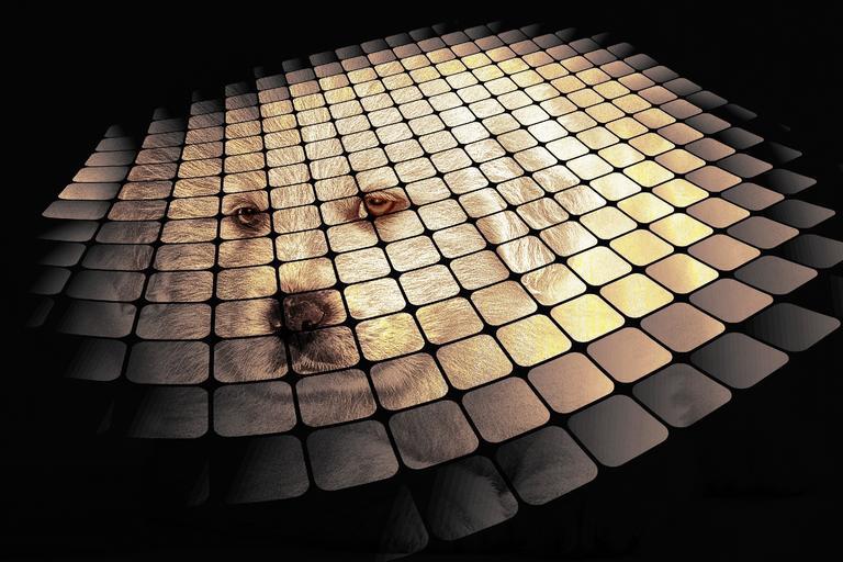 Keywords: digital art creative computer graphic design art artwork grid eyes dog face animal