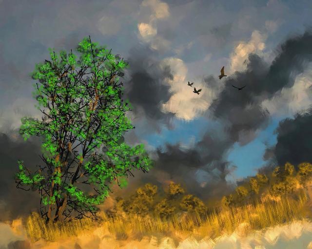 Keywords: digital art digital painting artwork art decorative decoration decor landscape trees birds creative