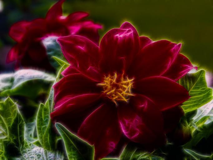 Keywords: digital art fragile shiny fractal red flower dahlia nature macro close-up