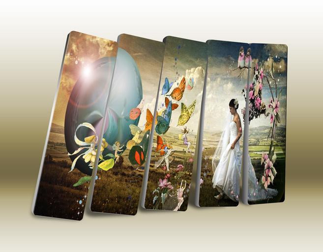 Keywords: digital bars fantasy scene flowers birds butterflies bride woman dress white globe ball abstract conceptual