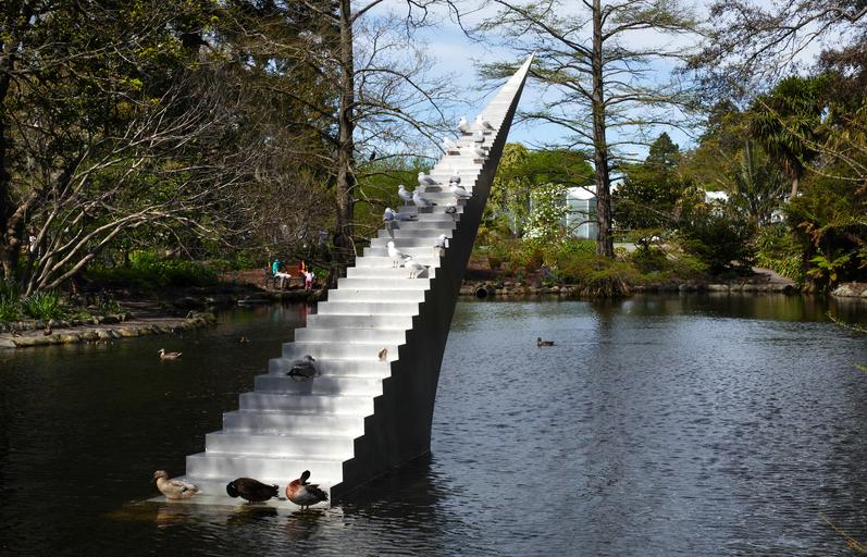 Keywords: diminish and ascend sculpture. diminishandascendsculpture christchurch art public art publicart lumix fz1000 lumixfz1000 geo tagged geotagged flickr lover flickrlover free photos freephotos watercourse water outdoor landscape creek The vertiginous Diminish and Ascend has previously drawn great attention at Sculpture by the Sea, Sydney and Sculpture on the Gulf on Waiheke Island. Located in Kiosk Lake within the Christchurch Botanic Gardens, the illusion of a staircase to the sky rising out of the lake will take on its own resonance. McCracken is a highly skilled maker, specialising in working with metal, pushing its capabilities to realise formally sophisticated and tactile works. The vertiginous Diminish and Ascend has previously drawn great attention at Sculpture by the Sea, Sydney and Sculpture on the Gulf on Waiheke Island. Located in Kiosk Lake within the Christchurch Botanic Gardens, the illusion of a staircase to the sky rising out of the lake will take on its own resonance. McCracken is a highly skilled maker, specialising in working with metal, pushing its capabilities to realise formally sophisticated and tactile works.