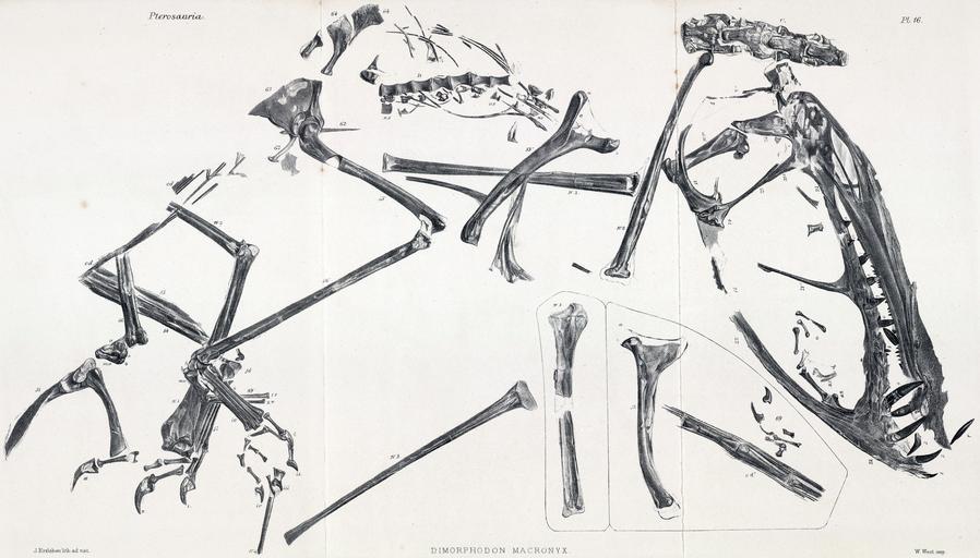 Keywords: Dimorphodon fossil.jpg Dimorphodon macronyx fossil from Lyme Regis http //www lib utexas edu/books/britfossils/html/txu-oclc-13370987-4-pterosauria-plate16 php Late 1800s J Erxleben PD-old Dimorphodon fossils
