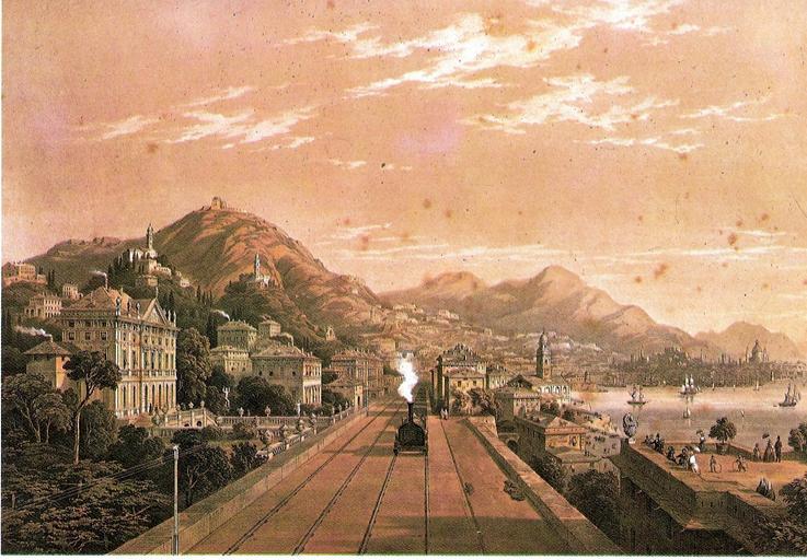 | Keywords: Dinegro-inaugurazione ferrovia 1854.jpg Dipinto raffigurante l'inaugurazione della tratta ferroviaria tra la zona di Principe e Sampierdarena Nell'immagine è visibile villa Rosazza sede attuale della Fondazione Casa America own 2009-06-24 Davide Papalini PD-Art San Teodoro quarter of Genoa Genova Piazza Principe train station Genoa in art 1854 in Genoa |