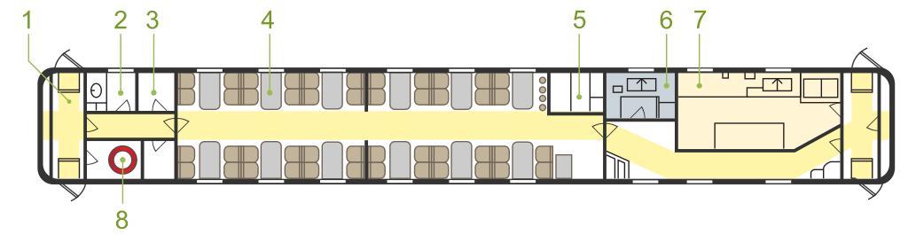 | Keywords: Dining car design.svg en Dining car design de Grundriss eines Speisewagens ru Схема вагон- есто ана Own Ahnode 11/12/2008 Обозначения Тамбу Умывальное помещение Холодильные каме ы Салон с четы ёхместными столами Буфет Помещение для мойки посуды Кухонное отделение Котельное отделение Bildbeschreibung Vorraum Waschraum Kühlkammer Speiseraum Büfett Spülküche Küche Heizraum Coaching stock Drawings of passenger cars | ||||
