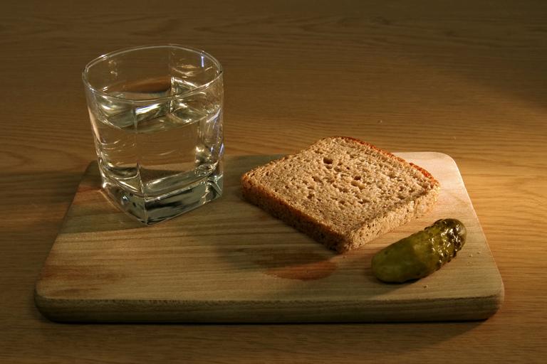 Keywords: dinner bread dry water cucumber poverty food dish eat vodka glass