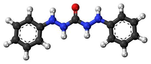 | Keywords: Diphenylcarbazide 3D ball.png Ball-and-stick model of the Diphenylcarbazide molecule Colour code 505050 Carbon C black<br> F0F0F0 Hydrogen H white<br> F51E1E Oxygen O red<br> 3C50FA Nitrogen N blue<br> 2011-06-25 own DS Visualizer Jynto talk Space-filling version cc-zero carbamides hydrazides Un-N-substituted anilides Images by Jynto Ball-and-stick models |