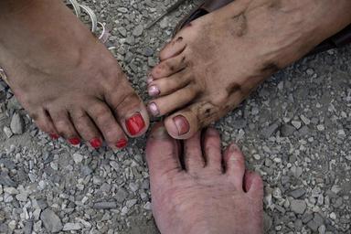 Keywords: dirty feet dirt pebbles human women toes hiking
