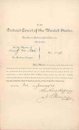 Keywords: u.s. national archives usnationalarchives documented rights exhibit documentedrightsexhibit san bruno sanbruno document nara:arcid=2641491 discharge judge san francisco sanfrancisco text monochrome Title: Discharge of a San Francisco Judge in the Matter of Wong Kim Ark, 01/03/1896 From: Record Group/Collection: 21 Record Hierarchy Level: Item Reference Unit: National Archives at San Bruno Persistent URL: catalog.archives.gov/id/2641491 Repository Contact Information: NARA’s Pacific Region (San Bruno) (NRHAS), 1000 Commodore Drive, San Bruno, CA, 94066-2350.. Reproductions may be ordered via an independent vendor. NARA maintains a list of vendors at www.archives.gov/research/order/vendors-photos-maps-dc.html Access Restrictions: Unrestricted Use Restrictions: Unrestricted Title: Discharge of a San Francisco Judge in the Matter of Wong Kim Ark, 01/03/1896 From: Record Group/Collection: 21 Record Hierarchy Level: Item Reference Unit: National Archives at San Bruno Persistent URL: catalog.archives.gov/id/2641491 Repository Contact Information: NARA’s Pacific Region (San Bruno) (NRHAS), 1000 Commodore Drive, San Bruno, CA, 94066-2350.. Reproductions may be ordered via an independent vendor. NARA maintains a list of vendors at www.archives.gov/research/order/vendors-photos-maps-dc.html Access Restrictions: Unrestricted Use Restrictions: Unrestricted |