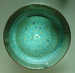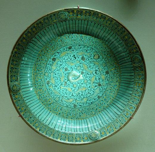 | Keywords: Dish fish Louvre OA6456.jpg  Dish with fish of the ladjvardina cobalt type Earthenware with stain and gilded decoration coloured opacified glaze overglaze painted Iran late 13th century-early 14th century Plat à la ronde de poissons du type ladjvardina « cobalt » Céramique siliceuse à décor de petit feu et doré sur glaçure opacifiée colorée Iran fin du XIIIe siècle début du XIVe siècle Museum Louvre Department of Islamic Art Richelieu lower ground floor room 10 object history credit line Purchase 1911 accession number OA 6456 Jastrow 2006 other versions Ceramics of Iran in the Louvre Ceramic plates Fish in pottery Shapes resembling number 0 |