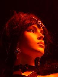 Keywords: display dummy woman doll head face fashion decoration portät jewellery diadem earrings