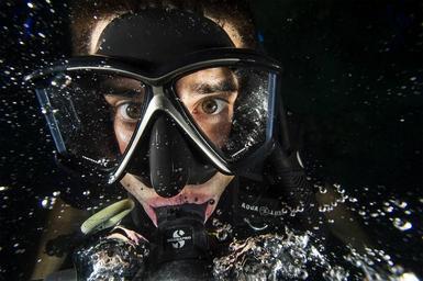 MAKE A MEME View Large Image diver man swimmer water goggles oxygen close-up