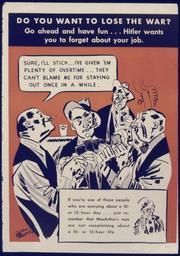 Keywords: Do you want to lose the war^ Go ahead and have fun... Hitler wants you to forget about your job. - NARA - 534993.jpg Scope and content General notes 534993 Local identifier 179-WP-1142 Office for Emergency Management War Production Board 01/1942 - 11/03/1945 Still Picture Records Section Special Media Archives Services Division NWCS-S National Archives at College Park 8601 Adelphi Road College Park MD 20740-6001 other date circa 1942 1943 Record group Record Group 179 Records of the War Production Board 1918 - 1947 Record group ARC 508 War Production Board compiled 1942 - 1943 Series ARC 533858 File unit File unit ARC Variant control numbers NAIL Control Number NWDNS-179-WP-1142 Other versions <gallery> File Do_you_want_to_lose_the_war _Go_ahead_and_have_fun _Hitler_wants_you_to_forget_about_your_job _-_NARA_-_534993 tif tif File Do_you_want_to_lose_the_war _Go_ahead_and_have_fun _Hitler_wants_you_to_forget_about_your_job _-_NARA_-_534993 jpg jpg </gallery> NARA-cooperation PD-USGov World War II posters from the United States |