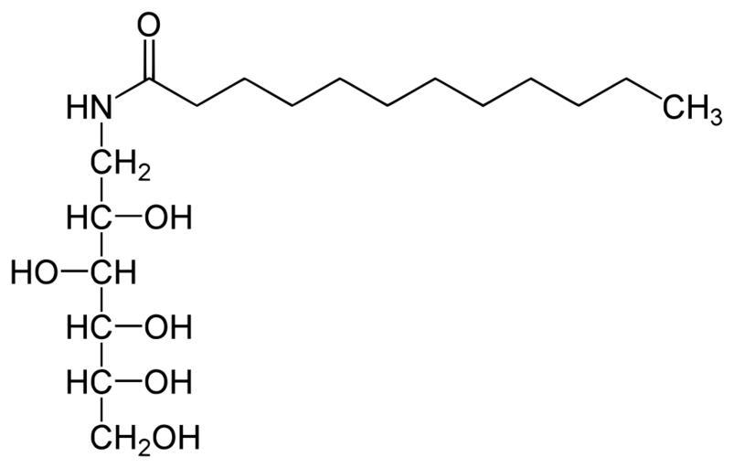 Keywords: Dodecyl glucamide.svg en Dodecyl glucamid de Dodecylglucamid own Yikrazuul 2009-11-26 Saturated fatty acids Amino sugars