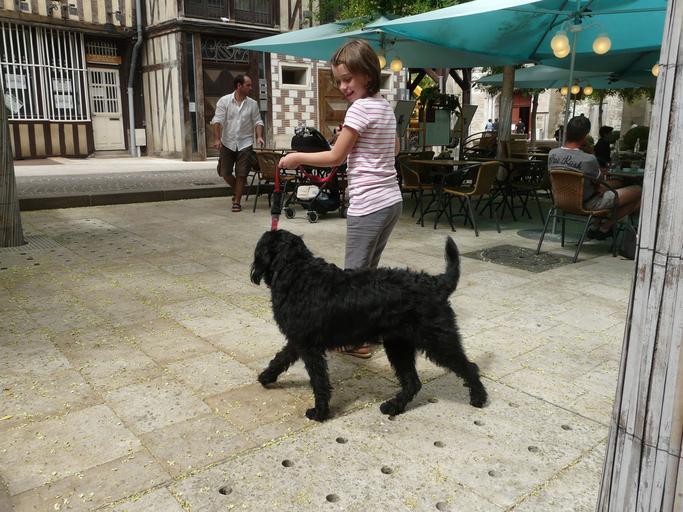 Keywords: dog animal pet labradoodle black girl with dog kid with dog young girl young kid happy play playing girl