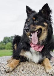Keywords: dog bitch straw bales cloth animal hybrid pet brown good portrait protector awakened purebred dog brown eyes hundeportrait snout space tongue vigilant head view
