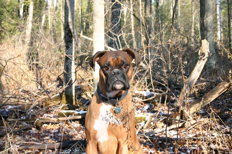 View Original:dog-boxer-sitting-woods-canine-340477.jpg (2400x1600)