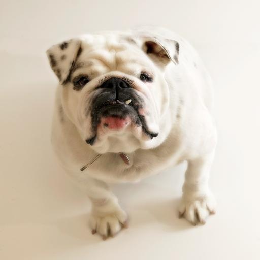 Keywords: dog bulldog face funny animal cute lovable teeth white soft spots pet puppy canine adorable domestic breed mammal expression