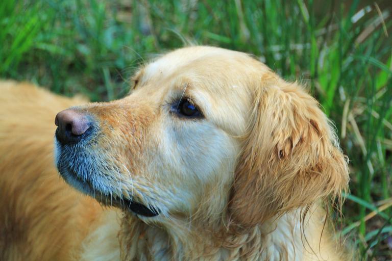 Keywords: dog dogs animal portrait animal portrait head mammal fur face ears snout golden retriever pet retriever animals hair view