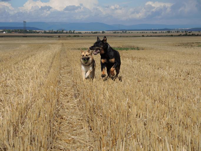 Keywords: dog dogs animal summer outdoors nature rottweiler shepherd grain sky landscape field