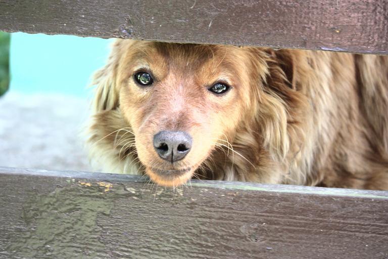 Keywords: dog fur animals snout the nose eyes furry an interesting vigilance rudy mammal village closeup and the tramp the fence boards wooden knots texture