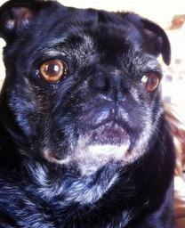 Keywords: dog pug pet canine puppy cute breed domestic purebred friend doggy companion black head face portrait