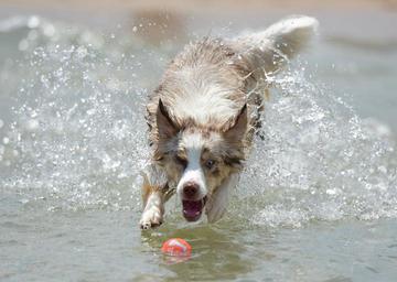 Keywords: dog puppy pet animal cute canine purebred pup fur playful cute puppy young funny face doggy pedigree play eyes happy beach sand dog playing playing park nature outdoors happy dog australian shepherd
