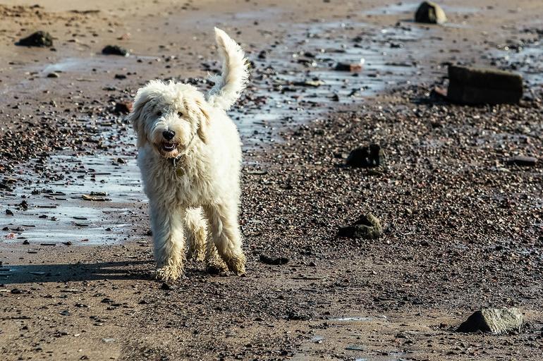 Keywords: dog sea dog on beach play hybrid beach