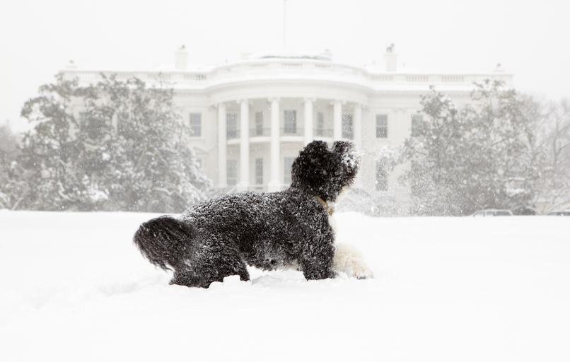Keywords: dog snow white house portuguese water dog bo obama pet playing washington dc president usa outdoors canine playful