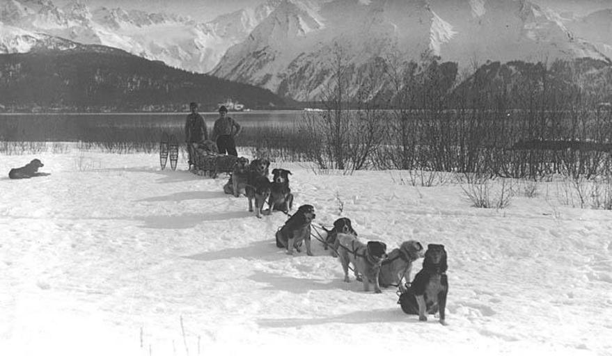 Keywords: Dogsled team and drivers, near Seward, ca 1914 (THWAITES 241).jpeg Photograph Creator John E Thwaites John Thwaites made one mail delivery trip by dogsled from Seward about 1914 Caption on image A visit on the trail near Seward Alaska PH Coll 247 385 Subjects LCTGM Dogsledding--Alaska--Seward; Dog teams--Alaska--Seward; Snow--Alaska--Seward; Snowshoes snowshoeing--Alaska--Seward Subjects LCSH Sled dogs--Alaska--Seward; Sleds--Alaska--Seward; Mushers--Alaska--Seward depicted place Seward Alaska ca 1914 Institution University of Washington UWASH-THWAITES-source accession number thwaites 241 PD-old-auto-1923 1940 Information field Order Number THW201 Images from the John E Thwaites Photographs of Alaska Collection to check Snow in Alaska Sled dogs Mushers Seward Alaska Snowshoes |