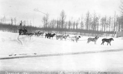 | Keywords: Dogsled team on the trail with lead dog unharnessed, ca 1912 (THWAITES 242).jpeg check categories 27 October 2016 3 Photograph Creator John E Thwaites Caption on image The Loose Leader Alaska PH Coll 247 388<br/>Prior to the formation of sled dog racing as a formal sport sled dogs were bred and used by native peoples of the polar regions of the world in their everyday lives for survival in harsh climates Two dogs commonly employed in sledding are Alaskan Malamutes and Siberian Huskies These two breeds had quite different origins and uses Alaskan Malamutes originated with a group of Eskimo people known as the Mahlemiut The dogs of that time were very large freighting dogs capable of pulling heavy weight The Mahlemiut people inhabited the region in the upper part of the Anvik River in Alaska and were spread out over a large area The Mahlemiut people used these dogs for hauling food back to the villages The gold rush in 1896 created a high demand for these dogs On the other hand Siberian Huskies originated with the Chuckchi people of northeastern Siberia These people had a Stone Age culture and used their dogs for a variety of things like herding reindeer and pulling loads These dogs were smaller and faster than their Mahlemiut counterparts These dogs were exported to Alaska at around the time of the gold rush Thus the gold rush played a very important role in the development of our modern day sled dog breeds Sled dog racing began as a formal sport with the first All-Alaska Sweepstakes race in 1908 Prior to this Alaska's mushers had little opportunity for recreation and they used their teams primarily for work and transportation Naturally most northern breeds were used as sled dogs Alaskan Malamutes Siberian Huskies Eskimo Dogs Greenlands Samoyeds Norrbottenspets and Hokkaidokens are all sled dogs However lots of different breeds of dogs have been and are used to drive sleds and carts Subjects LCTGM Dogsledding--Alaska; Dog teams--Alaska; Snow--Alaska Subjects LCSH Sled dogs--Alaska; Mushers--Alaska; Harnesses--Alaska depicted place Alaska ca 1912 Institution University of Washington UWASH-THWAITES-source accession number thwaites 242 PD-old-auto-1923 1940 Information field Order Number THW204 Images from the John E Thwaites Photographs of Alaska Collection to check Snow in Alaska Sled dogs Mushers |