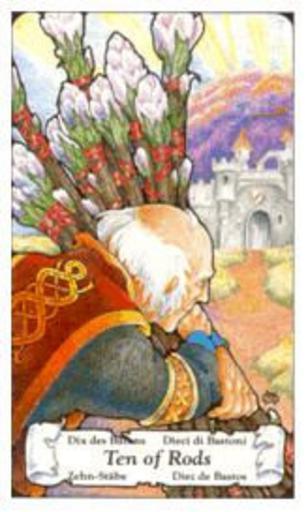 Keywords: tarot Ten of Wands: Sometimes the 10 of Wands indicates that you have been too successful and would be well-served by scaling back. You are probably tired, you've been working very hard, personally and professionally, and could use a break. Give yourself one. You will not gain by pretending that there are no problems. If you're in the market for love, do not despair. Your time will eventually come, but perhaps now is a good time to halt your search and just take some time for rest and reflection. Don't be afraid to reach out for assistance if you need it. But you also have to learn when enough is enough, and when it is time to get out from under your burdens. The major theme here is to take good care of yourself, in every way, as to do so is especially critical now. Ten of Wands: Sometimes the 10 of Wands indicates that you have been too successful and would be well-served by scaling back. You are probably tired, you've been working very hard, personally and professionally, and could use a break. Give yourself one. You will not gain by pretending that there are no problems. If you're in the market for love, do not despair. Your time will eventually come, but perhaps now is a good time to halt your search and just take some time for rest and reflection. Don't be afraid to reach out for assistance if you need it. But you also have to learn when enough is enough, and when it is time to get out from under your burdens. The major theme here is to take good care of yourself, in every way, as to do so is especially critical now. |