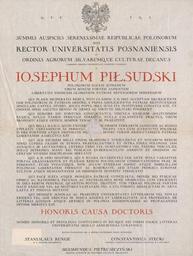 | Keywords: Doktorat Honoris Causa dla Jozefa Pilsudskiego od Uniwersytetu Poznanskiego.jpg paper accession number 53/296/0/176 place of creation Poznań cc-zero Józef Piłsudski in 1933 State Archive in Poznań Uploaded with VicuñaUploader Adam Mickiewicz University 1933 in Poznań |