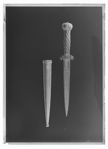 | Keywords: Dolk, Persien, 1500-talets slut, den s.k. Lammska dolken - Livrustkammaren - 68954-negative.tif Dolken är helt av brunerat -mörkanlöpt stål <br/> <br/>Fäste med spiralformig kannelering upptill pungformigt vidgat Kannelyrerna möts strålformigt där de sammanhålls av en cabochonslipad i kista fattad turkos Fattningen omgiven av en blomliknande krage av guld Hela fästet täckt av en yttäckande ornering av påslaget guld med utsparade rankor och bladornament Korta inrullade parerstänger med en slags styrskena på båda sidor med fem turkoser som den på fästet dekoren också lika som den på fästet i övrigt <br/><br/>Klinga rak tvåeggad med yttäckande ornering av påslaget guld med utsparade rankor och bladornament 30 mm från klingbasen på båda sidor två solfjädersliknande fördjupningar och därefter fram till spetsen två bredvid varandra liggande fördjupningar I dessa tre efter varandra liggande utsparade ovaler med persisk inskription i guld Hela klingan med en smal kant utan ornering original caption end other date century 16 turquoise b4 - blankvapen - fästdekor material turkos - steel b12 - blankvapen - fäste och klinga material stål - gold b45 - blankvapen - fäste och klingdekor material guld g 190 size mm 20 klinga size mm 70 klinga size mm 40 size mm 273 LRK Carl Robert Lamm Fredrik Robert Martin Fil dr konstsamlare 1868- Stockholm Sverige Meisterwerke Muhammedanischer Kunst Carl Robert Lamms samling 1993 Hunt for Paradise Court Arts of Safavid Iran 1501-1576 2003-2004 place of origin original filename LN_B01808_004688 42017 inventory number LRK 5360 68954 CC0 Dolk Persien 1500-talets slut den s k Lammska dolken - Livrustkammaren - 68954 tif <gallery caption Different images of same object > File Dolk Persien 1500-talets slut den s k Lammska dolken - Livrustkammaren - 77513 tif </gallery> |