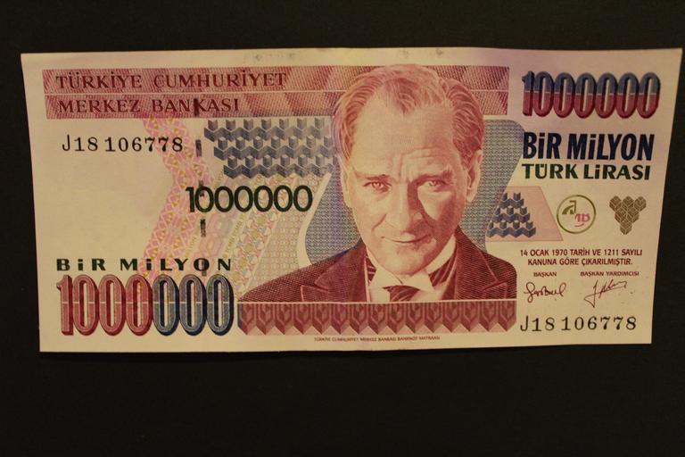 Keywords: dollar bill currency bills paper money finance financial world pay funds seem turkey lira a million turkish lira economy