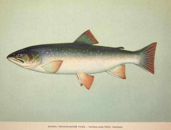 | Keywords: Dolly Varden Salvelinus malma 1957.jpg en Plate 55 Salvelinus malma Walb Family Salmonidae In Fishery Resources of the USSR N N Kondakov Artist Editor 1957 NOAA Central Library Call Number SH91 R9 1957 2014-01-27 12 06 25 http //www photolib noaa gov/700s/fish3692 jpg Russian Federal Research Institute of Fishery and Oceanography VNIRO ; Artist N N Kondakov PD-USGov Uploaded with UploadWizard Salvelinus malma | ||||