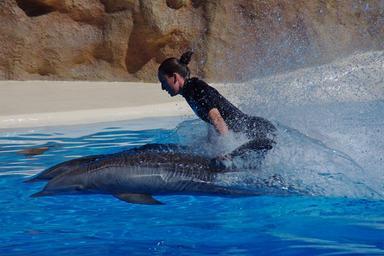 Keywords: dolphin marine mammals water dolphins swim fast water fun speed active pleasure show woman demonstration delphi rode