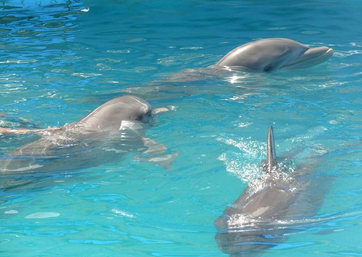 dolphin-swimming-three-pool-water-89032.jpg (1280x910)