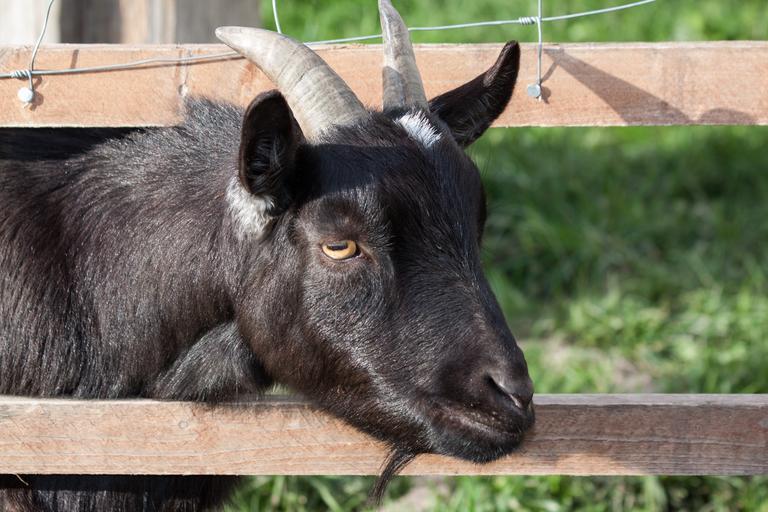 Keywords: domestic goat capra aegagrus hircus goat animal bock billy goat black horned horns goatee creature livestock farm fur fence curious