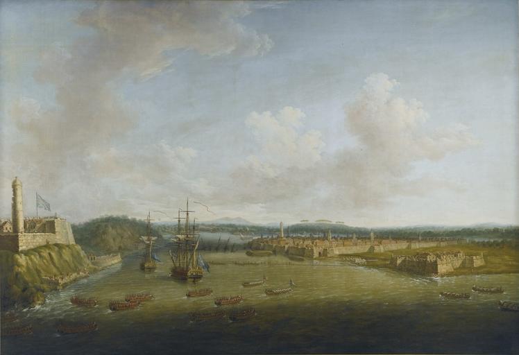 Keywords: Dominic Serres - The Capture of Havana, 1762, Taking the Town, 14 August.jpg Artwork Creator Dominic Serres A depiction of an episode from the last major operation of the Seven Years War 1756-63 It was part of England's offensive against Spain when she entered the war in support of France late in 1761 The British Government's response was immediately to plan large offensive amphibious operations against Spanish overseas possessions particularly Havana the capital of the western dominions and Manila the capital of the eastern Havana needed large forces for its capture and early in 1762 ships and troops were dispatched under Admiral Sir George Pocock and General the Earl of Albemarle <br /><br /> The force which descended on Cuba consisted of 22 ships of the line four 50-gun ships three 40s a dozen frigates and a dozen sloops and bomb vessels In addition there were troopships storeships and hospital ships Pocock took this great fleet of about 180 sail through the dangerous Old Bahama Strait from Jamaica to take Havana by surprise Havana on Cuba's north coast was guarded by the elevated Morro Castle which commanded both the entrance to its fine harbour immediately to the west and the town on the west side of the bay <br /><br /> The terms of surrender for Havana were concluded on 13 August and in the painting a flotilla of boats of the fleet are shown ferrying in the occupation forces on the following day At the same time as this was taking place sailors dismantled the boom defence visible in the middle distance The Union flag flies from the fort and the men-of-war are firmly established in the harbour ca 1775 oil canvas cm 125 7 187 9 http //collections rmg co uk/collections/objects/11906 html Royal Museums Greenwich http //collections rmg co uk/mediaLib/287/media-287871/large jpg image object history Painted for General George Keppel 3rd Earl of Albemarle 1724 “1772 or his brother Admiral Augustus Keppel 1st Viscount Keppel 1725 “1786 and thence by inheritance to the last owners <br/>sold at Sotheby's London 06 July 2016 lot 42 credit line exhibition history On long term loan to the National Maritime Museum Greenwich 1948 to 2015 accession number BHC0414 accession number http //www sothebys com/en/auctions/ecatalogue/2016/old-master-british-paintings-evening-l16033/lot 42 html Sotheby's London 06 July 2016 lot 42 PD-old-100-1923 DEFAULTSORT Serres Dominic; Havana Taking the Town; Sotheby's 2016 Dominic Serres Paintings of Battle of Havana 1775 paintings Cuba in the 1760s 18th-century paintings of naval battles Images from Sotheby's |
