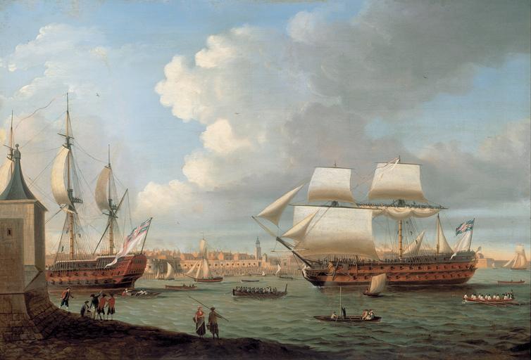 View Original:Dominic_Serres_-_Foudroyant_and_Pégase_entering_Portsmouth_Harbour,_1782_-_Google_Art_Project.jpg (4725x3210)