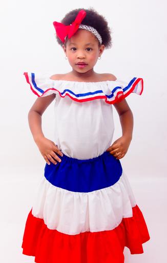 Keywords: dominican girl dress dominican republic colors red with blue blue with red smiling happy